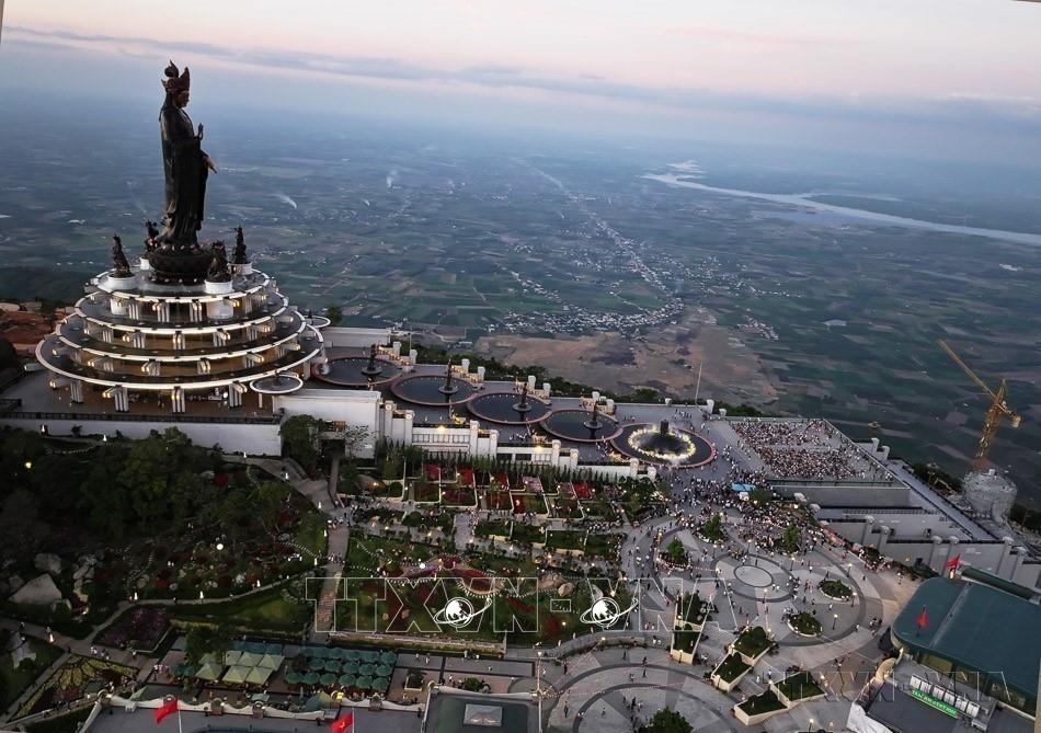 Đỉnh núi Bà Đen với nhiều công trình tạo dấu ấn hút khách du lịch. Ảnh: Thanh Tân - TTXVN