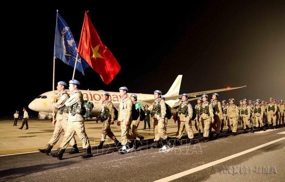 Tham gia có hiệu quả vào hoạt động gìn giữ hoà bình của Liên hợp quốc, nâng cao vị thế và trách nhiệm của Việt Nam với cộng đồng quốc tế. Trong ảnh: Cán bộ, chiến sĩ Bệnh viện dã chiến cấp 2 số 2 chào tạm biệt người thân và đồng đội, lên đường làm nhiệm vụ tại Phái bộ Gìn giữ hòa bình của LHQ tại Nam Sudan, ngày 26/11/2019. Ảnh: Dương Giang - TTXVN