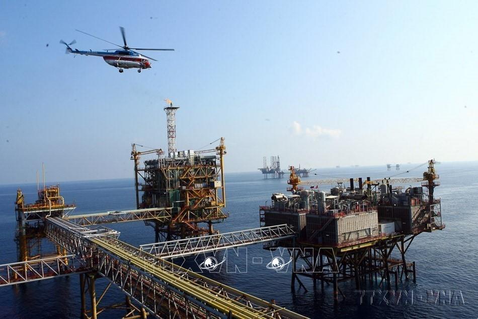 Kinh tế biển đang ngày càng khẳng định vai trò là động lực chiến lược, mở ra không gian phát triển mới cho đất nước. Trong ảnh: Giàn công nghệ Trung tâm số 2 bao gồm 4 công trình nổi trên biển là giàn công nghệ trung tâm, giàn ép vỉa, giàn nén khí và khu nhà ở cán bộ, công nhân viên. Ảnh: Huy Hùng - TTXVN