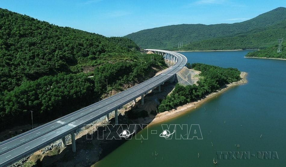 Dự án cao tốc thành phần Vũng Áng – Bùng với những cây cầu vượt hồ, vượt núi đã trở thành điểm nhấn ấn tượng, hòa quyện công trình giao thông với cảnh quan tự nhiên. Ảnh: Quốc Khánh-TTXVN