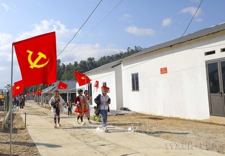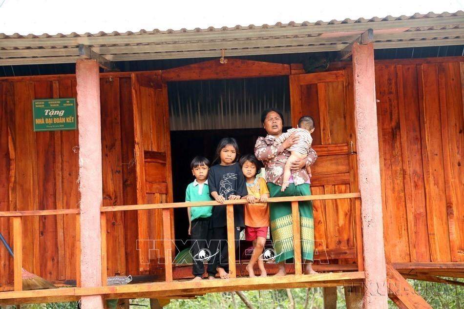 Chương trình xóa nhà tạm, nhà dột nát hoàn thành sớm hơn 5 năm, tạo nền tảng vững chắc cho phát triển công bằng, tiến bộ xã hội và bền vững của Việt Nam. Trong ảnh: Niềm vui đón Tết của đồng bào Bru - Vân Kiều trong những ngôi nhà mới đại đoàn kết tại Bản Dốc Mây (xã Trường Sơn, huyện Quảng Ninh) là bản khó khăn nhất của tỉnh Quảng Bình. Ảnh: Tá Chuyên - TTXVN