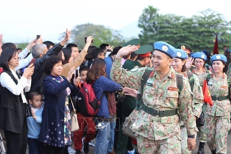 Nâng cao vị thế, vai trò quốc gia trên trường quốc tế, hợp tác đa phương hóa, đa dạng hóa. Trong ảnh: Lễ đón Đội Công binh số 1 (Cục Gìn giữ hòa bình Việt Nam - Bộ Quốc phòng) hoành thành xuất sắc nhiệm vụ tại Phái bộ UNISFA (khu vực Abyei), tối 15/8/2023. Ảnh: An Đăng - TTXVN