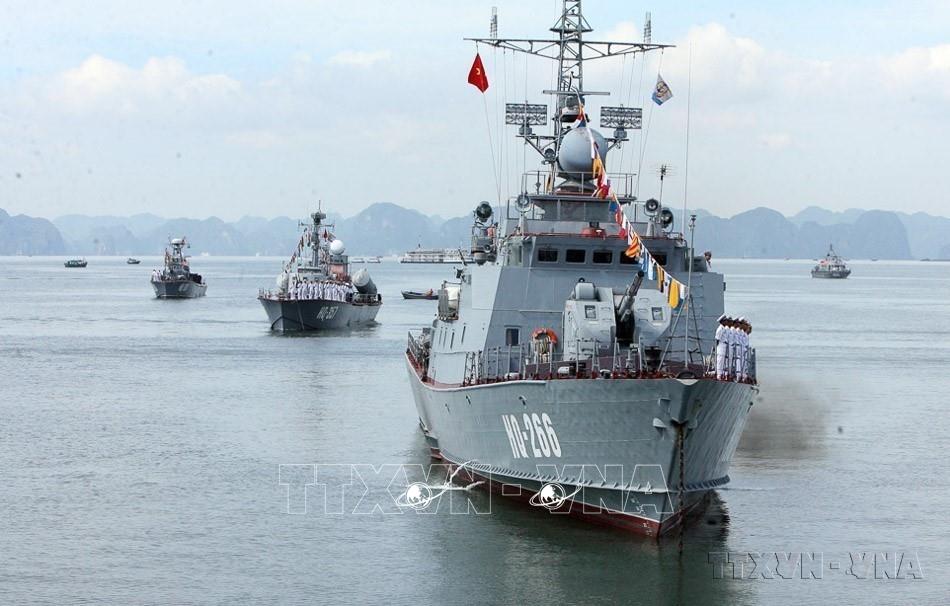 Các tàu chiến của Quân chủng Hải quân tham gia lễ tưởng niệm các Anh hùng Liệt sỹ và nhân dân đã hy sinh trong chiến thắng trận đầu ngày 2 và 5/8/1964 (Quảng Ninh). Ảnh: Trọng Đức - TTXVN