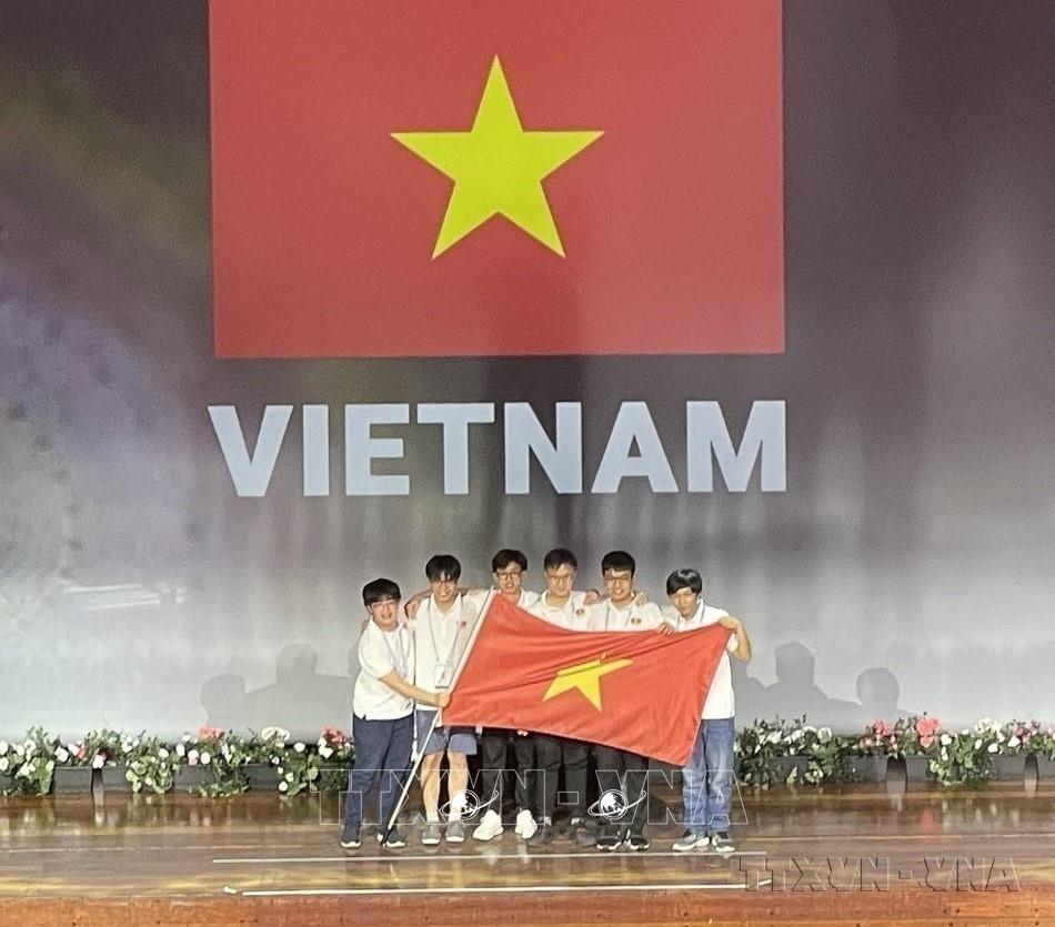 Giáo dục tiếp tục đổi mới căn bản, toàn diện, góp phần thực hiện thắng lợi mục tiêu phát triển đất nước trong giai đoạn mới. Trong ảnh: 6/6 học sinh Việt Nam đều đoạt giải: 02 HCV, 02 HCB, 02 HCĐ tại cuộc thi Olympic Toán học quốc tế năm 2022 (IMO 2022) tổ chức tại Nauy. Với thành tích này, đội tuyển Olympic Toán học quốc tế Việt Nam xếp thứ 4/104 quốc gia và vùng lãnh thổ tham gia sau Trung Quốc, Hàn Quốc và Mỹ. Ảnh: TTXVN phát