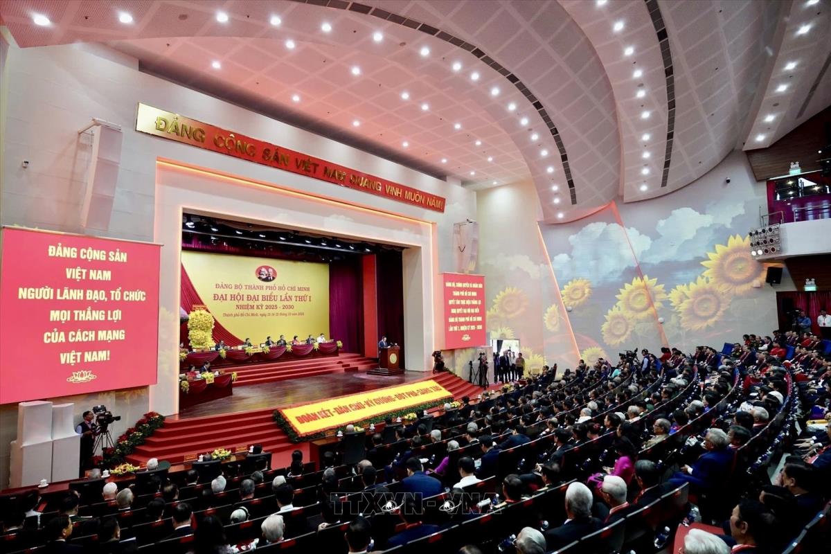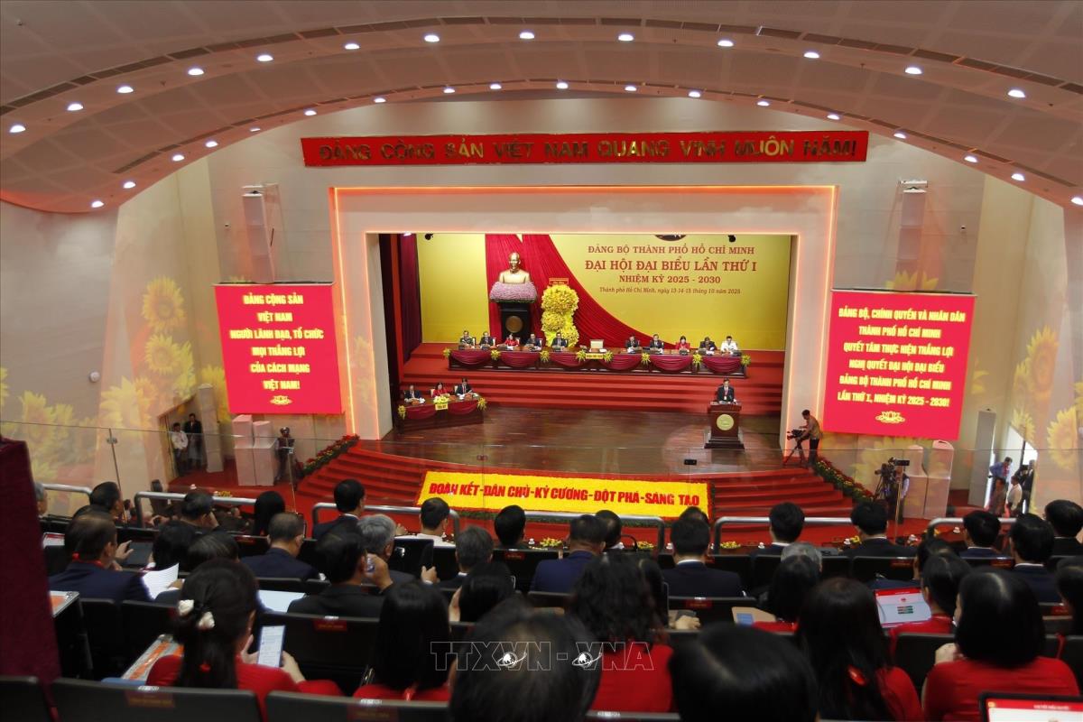 Quang cảnh Đại hội đại biểu Đảng bộ TP. Hồ Chí Minh lần thứ nhất, nhiệm kỳ 2025 – 2030 (14/10/2025). Ảnh: Thanh Vũ-TTXVN