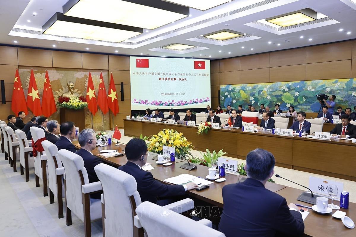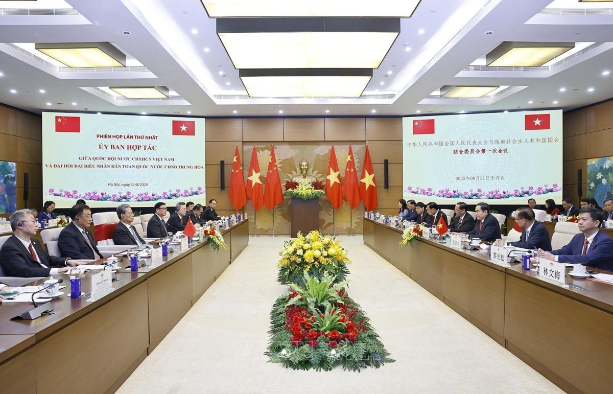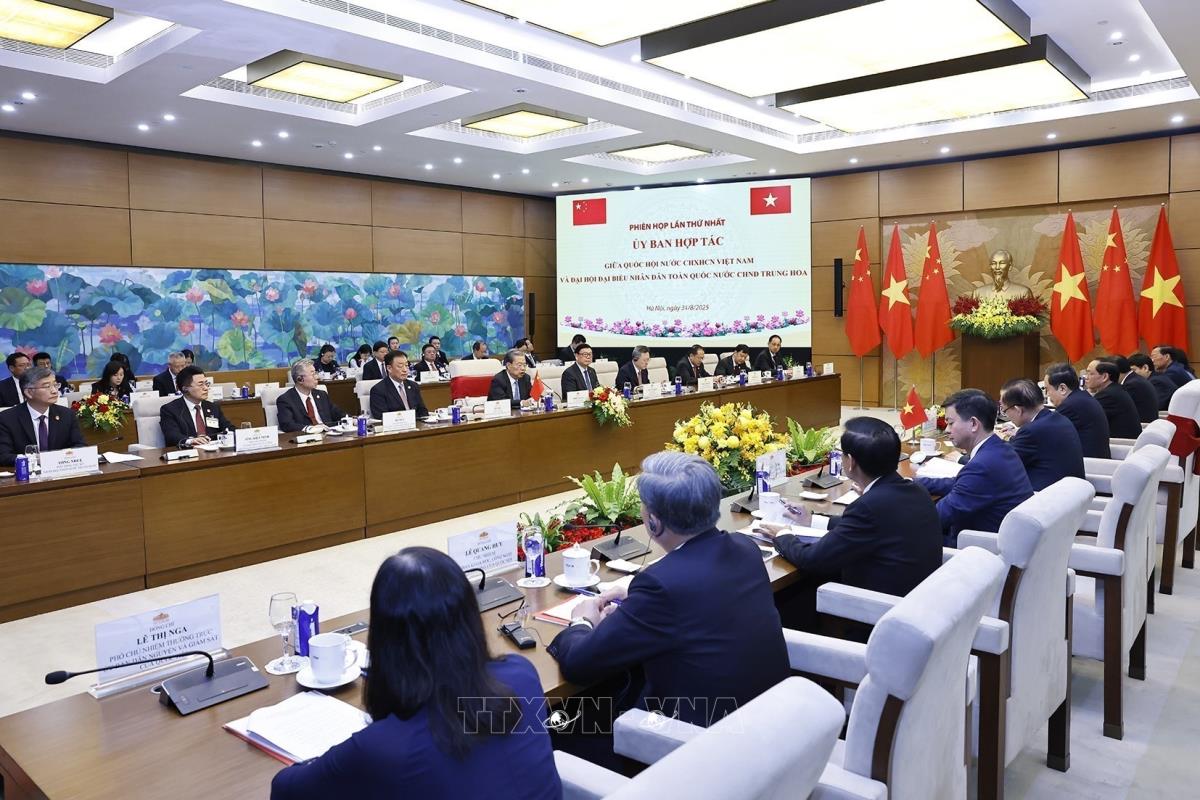 Quang cảnh Phiên họp lần thứ nhất Uỷ ban hợp tác giữa Quốc hội Việt Nam và Nhân đại toàn quốc Trung Quốc (31/8/2025). Ảnh: Doãn Tấn - TTXVN