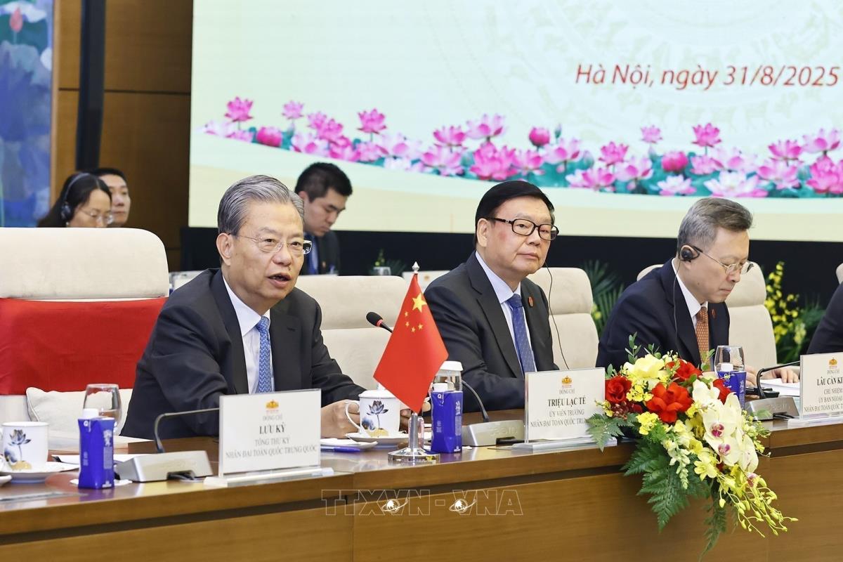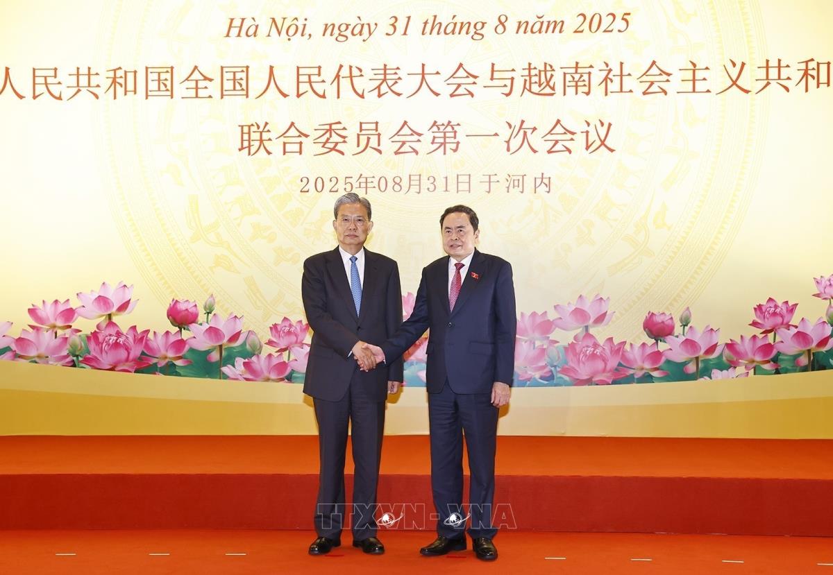 Hà Nội (TTXVN 31/8/2025) Chiều 31/8/2025, tại Nhà Quốc hội, Chủ tịch Quốc hội Trần Thanh Mẫn và đồng chí Triệu Lạc Tế, Ủy viên Thường vụ Bộ Chính trị Trung ương Đảng Cộng sản Trung Quốc, Ủy viên trưởng Ủy ban Thường vụ Đại hội Đại biểu Nhân dân toàn quốc nước Cộng hòa nhân dân Trung Hoa chủ trì Phiên họp lần thứ nhất Uỷ ban hợp tác giữa Quốc hội Việt Nam và Nhân đại toàn quốc Trung Quốc.