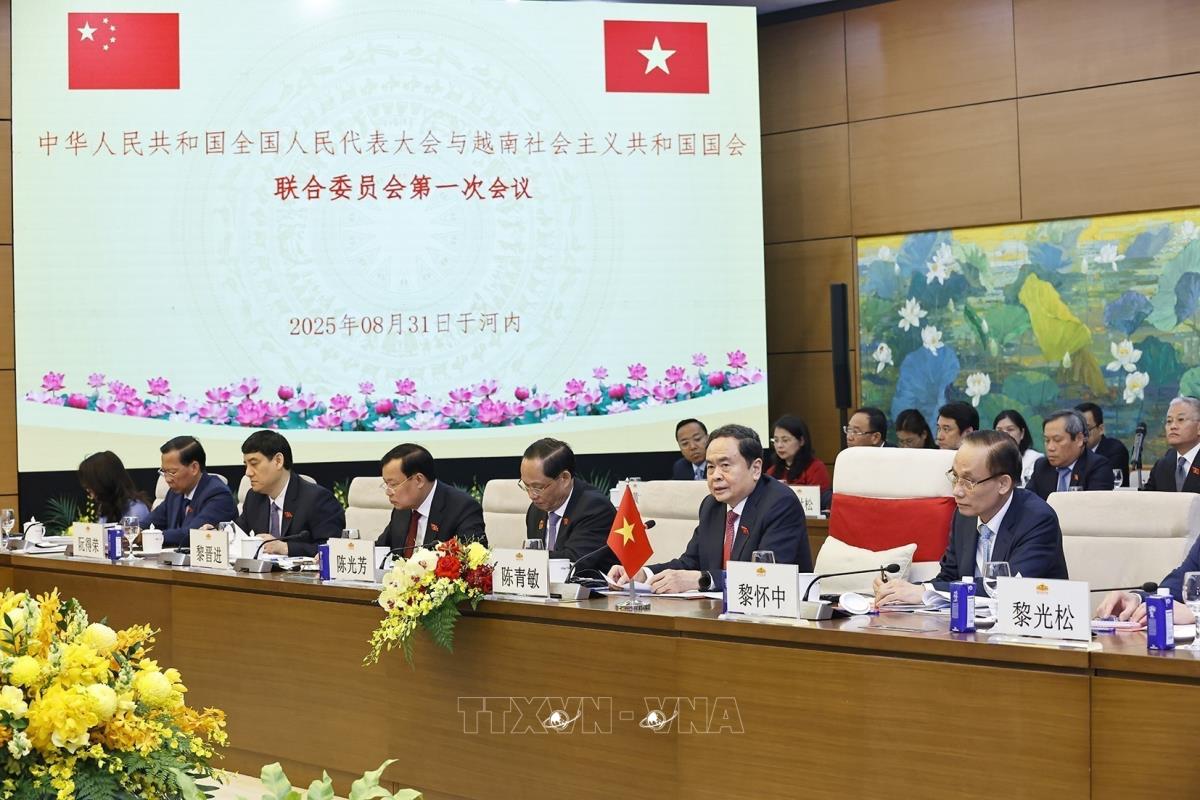 Phiên họp lần thứ nhất Uỷ ban hợp tác giữa Quốc hội Việt Nam và Nhân đại toàn quốc Trung Quốc (31/8/2025). Ảnh: Doãn Tấn - TTXVN