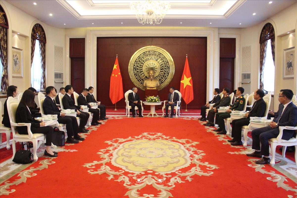 Đồng chí Hồ Xuân Hoa, Phó Chủ tịch Chính hiệp toàn quốc Trung Quốc chia buồn với Đại sứ Việt Nam tại Trung Quốc Phạm Thanh Bình (25/5/2025). Ảnh: Hải Yến - PV TTXVN tại Trung Quốc