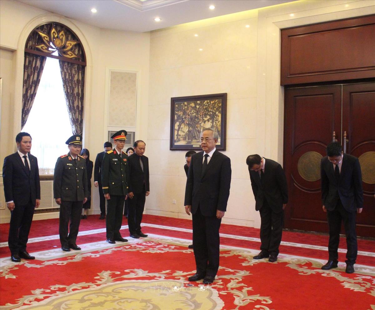 [Photo] Phó Chủ tịch Chính hiệp toàn quốc Trung Quốc đến viếng nguyên Chủ tịch nước Trần Đức Lương