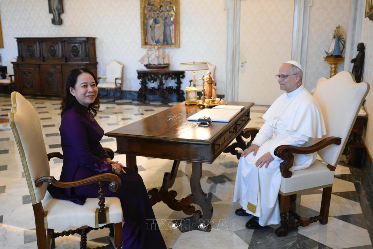 Phó Chủ tịch nước Võ Thị Ánh Xuân gặp Giáo hoàng Leo XIV (30/6/2025). Ảnh: TTXVN phát