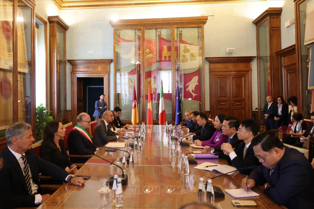 Tiếp theo chương trình làm việc tại Italy, chiều 30/6 theo giờ địa phương. Phó Chủ tịch nước Võ Thị Ánh Xuân đã có cuộc gặp Thị trưởng thành phố Rome, ông Roberto Gualtieri.