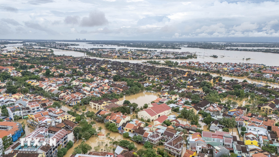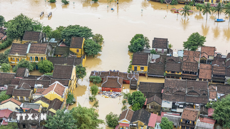 Những ngày qua, trên địa bàn thành phố Đà Nẵng liên tục có mưa to, và rất to trên diện rộng. Lượng mưa đặc biệt lớn, nước từ thượng nguồn đổ về cùng với điều tiết nước của các thủy điện làm cho lũ trên sông Vu Gia – Thu Bồn lên cao hơn mức báo động 3 và vượt đỉnh lịch sử năm 1964 vào đêm ngày 30/10/2025. Hàng nghìn ngôi nhà tại Phố cổ Hội An (thành phố Đà Nẵng) bị ngập sâu trong trận lũ lịch sử. Ảnh: Anh Dũng - TTXVN