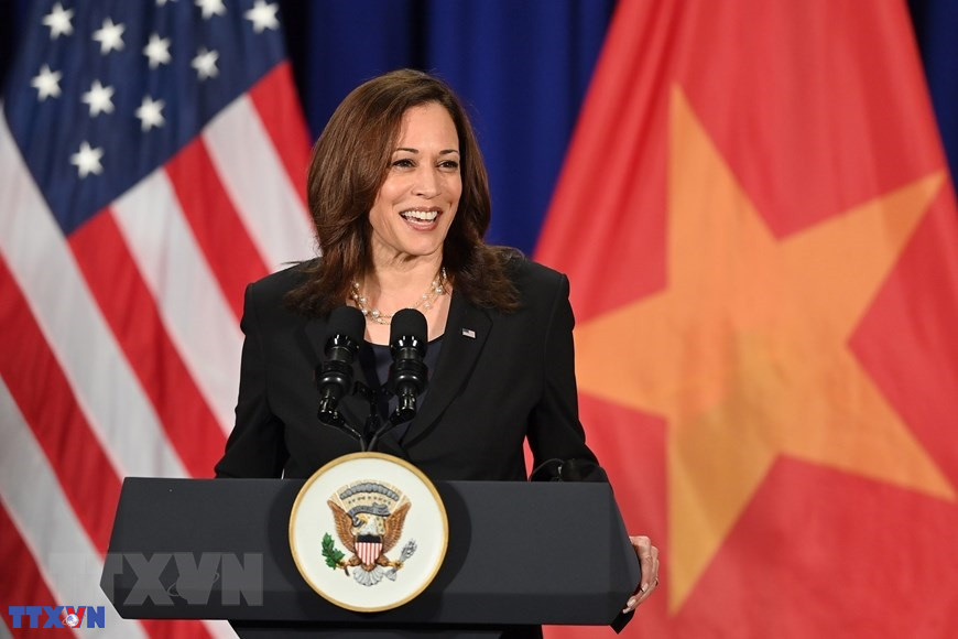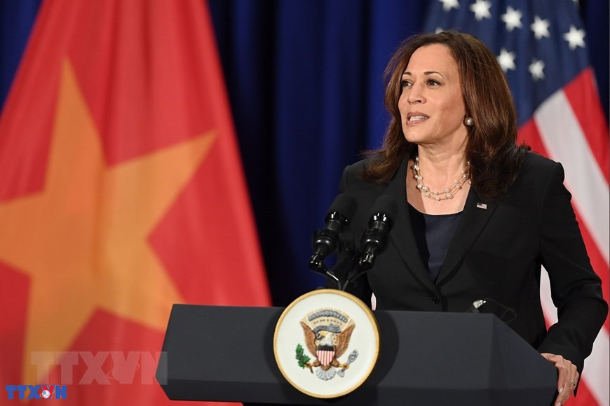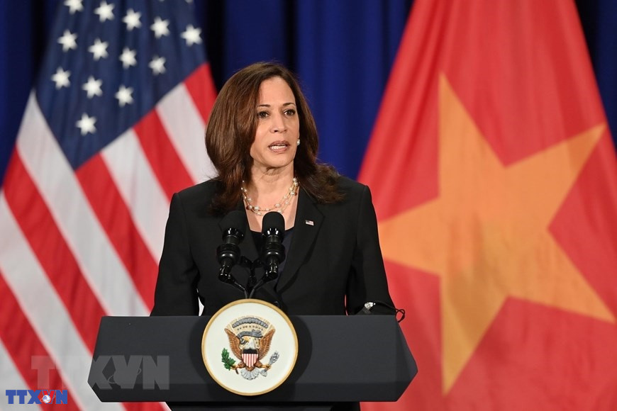 [Photo] Phó Tổng thống Hoa Kỳ Kamala Harris họp báo nhân chuyến thăm Việt Nam Hà Nội (TTXVN 26/8/2021) Chiều 26/8/2021, tại Hà Nội, Phó Tổng thống Hoa Kỳ Kamala Harris họp báo thông tin về chuyến thăm Việt Nam. Chiều 26/8, tại Hà Nội, Phó Tổng thống Hoa Kỳ Kamala Harris họp báo thông tin về chuyến thăm Việt Nam. (Nguồn: TTXVN)Phó Tổng thống Hoa Kỳ Kamala Harris phát biểu tại buổi họp báo chiều 26/8. (Nguồn: TTXVN)Hình ảnh Phó Tổng thống Hoa Kỳ Kamala Harris phát biểu tại buổi họp báo. (Nguồn: TTXVN)Phó Tổng thống Hoa Kỳ Kamala Harris phát biểu tại buổi họp báo chiều 26/8. (Nguồn: TTXVN)
