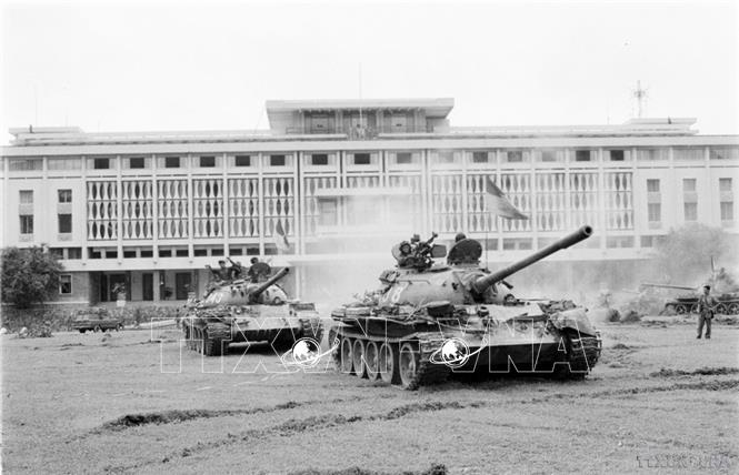 Sáng 30/4/1975, tổ mũi nhọn của Việt Nam Thông tấn xã gồm các phóng viên Vũ Tạo, Đinh Quang Thành, Hứa Kiểm, Trần Mai Hưởng, Ngọc Đản, Hoàng Thiểm, lái xe Ngô Bình, điện báo viên Lê Thái đã bám sát Quân đoàn 2 từ hướng Đồng Nai, qua cầu Xa lộ Đại Hàn tiến vào dinh lũy cuối cùng của chính quyền Sài Gòn./.