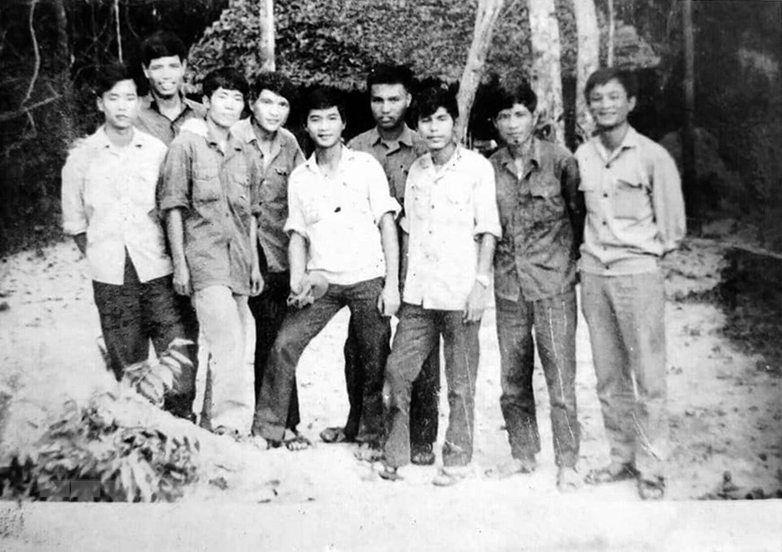 Phóng viên GP10 chụp ảnh kỷ niệm khi mới hành quân từ Bắc vào căn cứ Thông tấn xã giải phóng tại R (Tây Ninh) giữa năm 1973. (Ảnh: Tư liệu TTXVN)