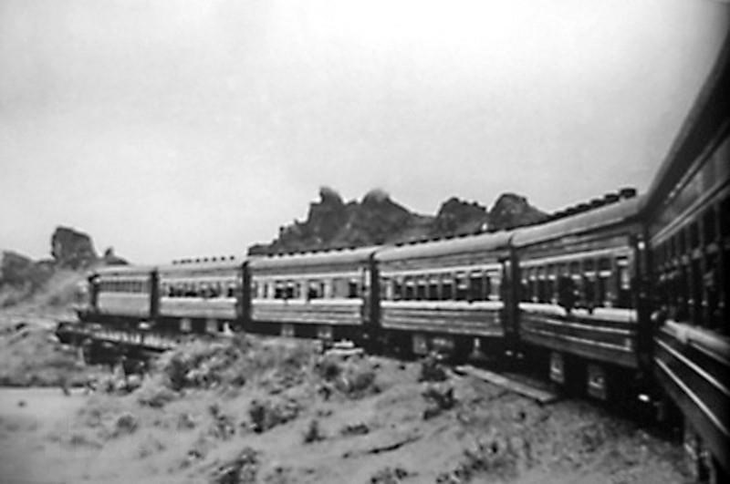 Đoàn tàu chở phóng viên GP10 rời Hà Nội vào chiến trường miền Nam di chuyển qua vùng Thanh Hóa còn đầy hố bom (tháng 3/1973). (Ảnh: Tư liệu TTXVN)