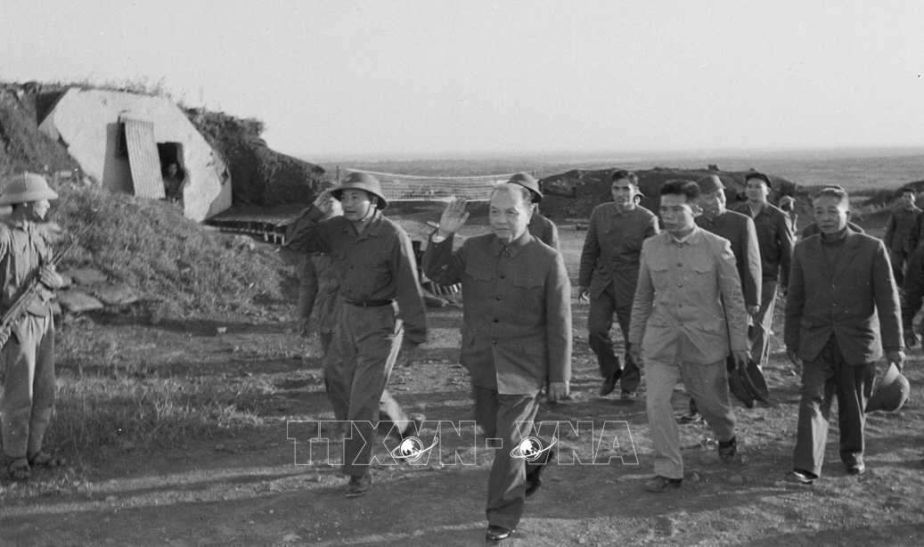 Tổng Bí thư Trường Chinh thăm căn cứ Dốc Miếu, tỉnh Quảng Trị (15/1/1974). Ảnh: Lâm Hồng-TTXVN