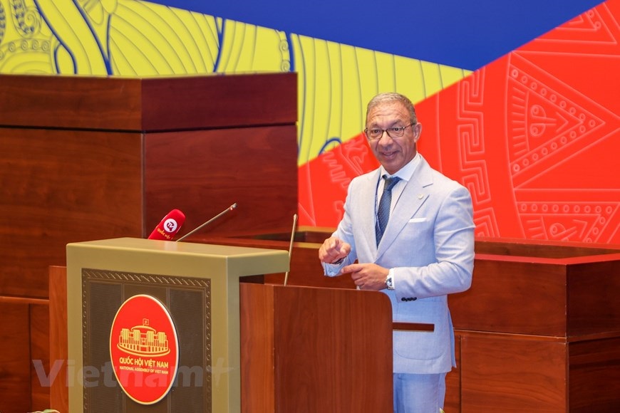 Ngài Duarte Pacheco - Chủ tịch Liên minh Nghị viện Thế giới (IPU) phát biểu tại sự kiện. (Ảnh: Minh Sơn/Vietnam+)