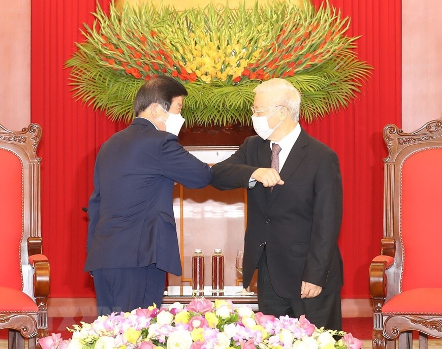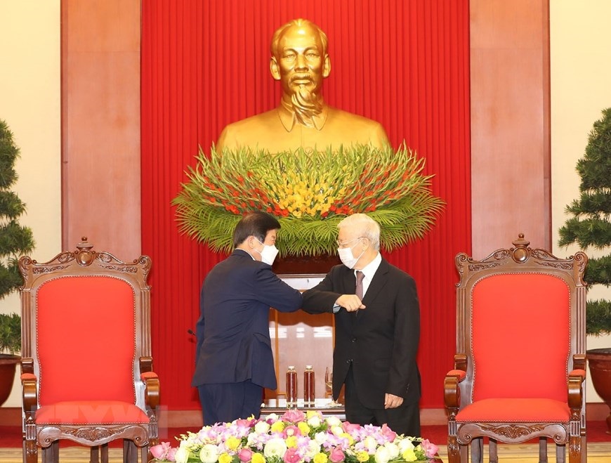 [Photo] Tổng Bí thư, Chủ tịch nước tiếp Chủ tịch Quốc hội Hàn Quốc