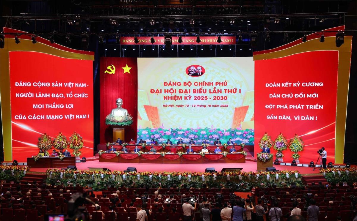 Toàn cảnh Đại hội đại biểu Đảng bộ Chính phủ lần thứ nhất, nhiệm kỳ 2025-2030 (13/10/2025). Ảnh: Phạm Kiên - TTXVN