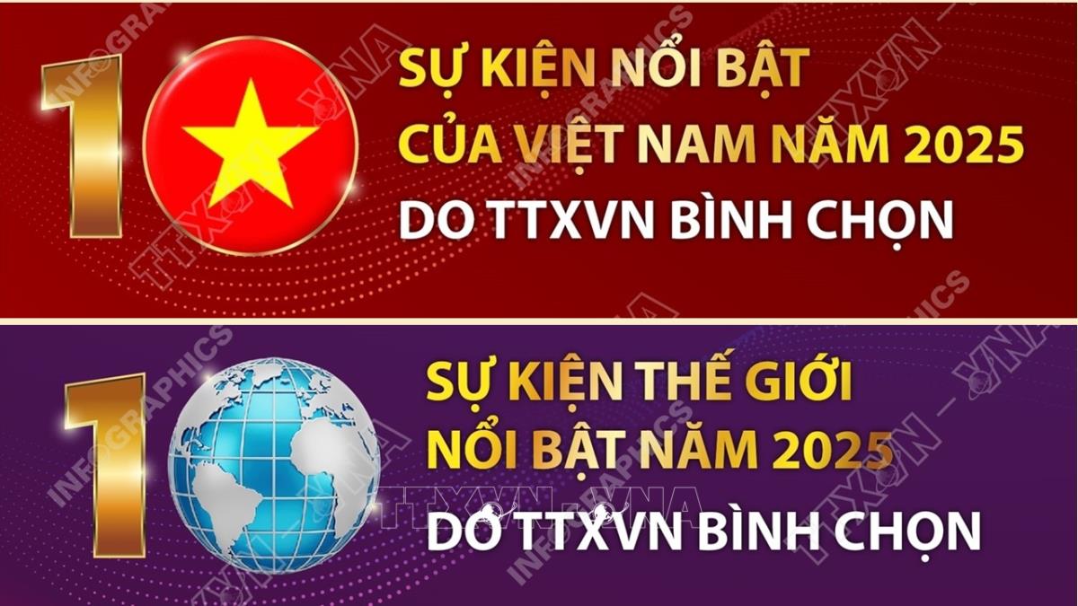 Thông tấn xã Việt Nam (TTXVN) trân trọng giới thiệu 10 sự kiện nổi bật của Việt Nam và 10 sự kiện thế giới nổi bật năm 2025 do TTXVN bình chọn.