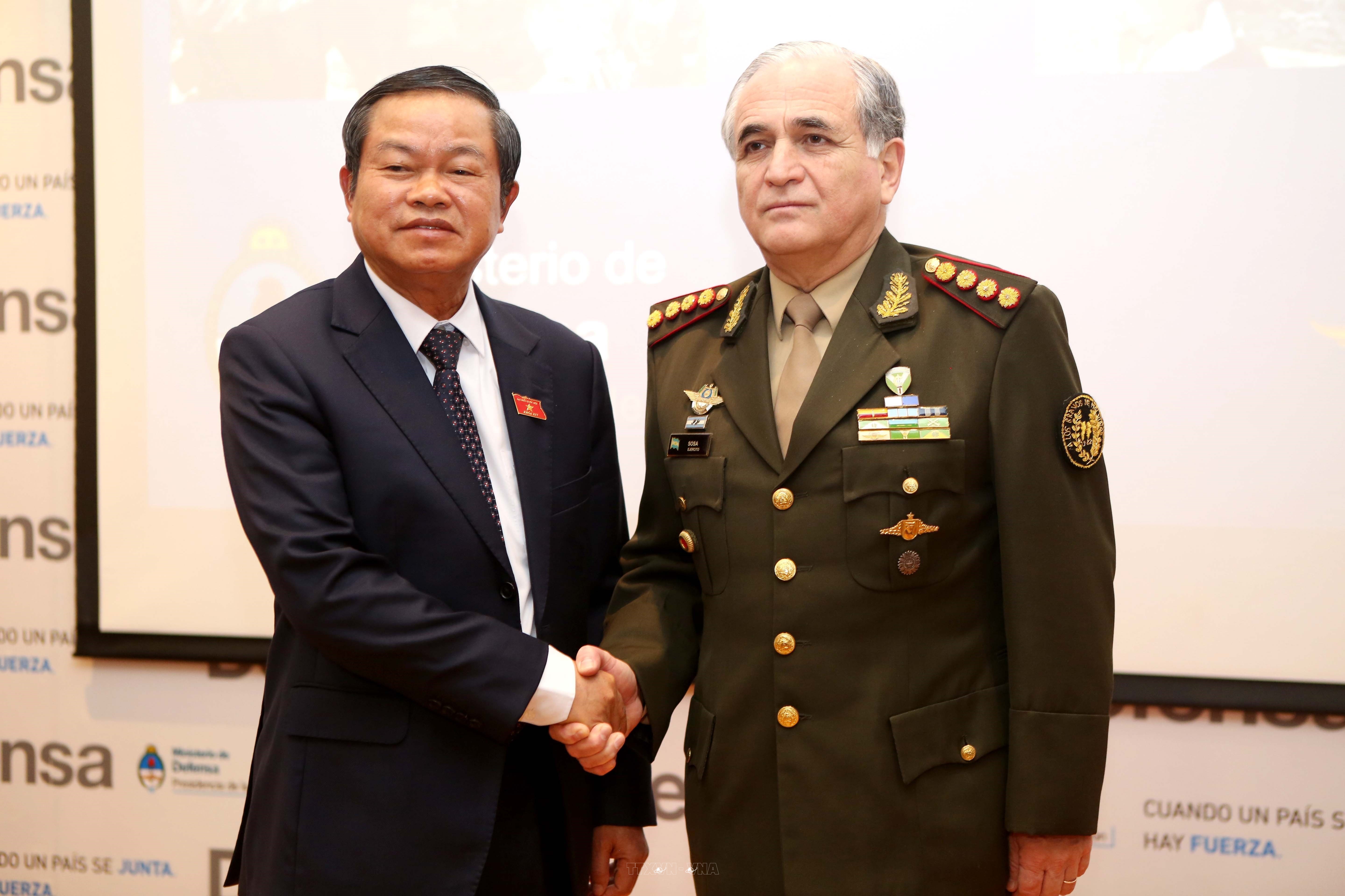 Đại tướng, Phó Chủ tịch Quốc hội Đỗ Bá Tỵ tại buổi làm việc với Đại tướng Tổng tham mưu trưởng quân đội Argentina Bari Del Valley Sosa. Ảnh: Hoài Nam-TTXVN