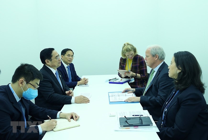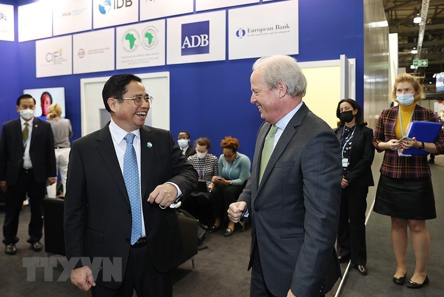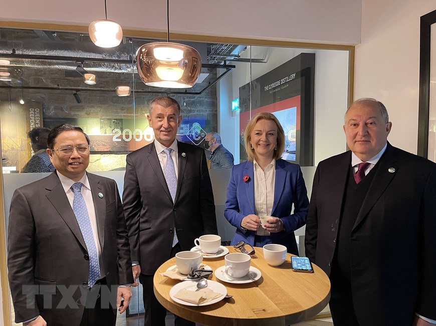 Hà Nội (TTXVN 02/11/2021) Những hình ảnh về hoạt động của Thủ tướng Phạm Minh Chính trong chuyến thăm, làm việc tại Vương quốc Anh và tham dự Hội nghị Các bên tham gia Công ước khung của LHQ về biến đổi khí hậu. Thủ tướng Phạm Minh Chính tiếp Giám đốc điều hành World Bank Alex Van Trotsenburg. (Ảnh: Dương Giang/TTXVN)Thủ tướng Phạm Minh Chính tiếp Giám đốc điều hành World Bank Alex Van Trotsenburg. (Ảnh: Dương Giang/TTXVN)Thủ tướng Phạm Minh Chính gặp Thủ tướng Canada Justin Trudeau. (Ảnh: TTXVN)Thủ tướng Phạm Minh Chính trao đổi với Thủ tướng Vương quốc Anh Boris Johnson. (Ảnh: TTXVN)Thủ tướng Phạm Minh Chính tham dự buổi gặp cùng với khoảng 50 nguyên thủ các nước và các tổ chức quốc tế do Thủ tướng Vương quốc Anh Boris Johnson và Thủ hiến Scotland, Thủ hiến xứ Wales, Thủ hiến Bắc Ireland chủ trì. (Ảnh: Dương Giang/TTXVN)Thủ tướng Phạm Minh Chính đến dự sự kiện công bố Cam kết giảm phát thải metan toàn cầu. (Ảnh: Dương Giang/TTXVN)