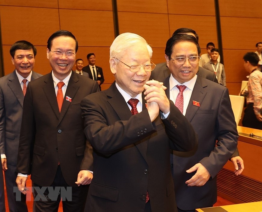 Hà Nội (TTXVN 22/5/2023) Kỳ họp thứ năm, Quốc hội khóa XV khai mạc trọng thể sáng 22/5/2023, tại Hội trường Diên Hồng, Nhà Quốc hội, Thủ đô Hà Nội. Các đồng chí lãnh đạo, nguyên lãnh đạo Đảng, Nhà nước tham dự. Các vị lãnh đạo, nguyên lãnh đạo Đảng, Nhà nước và đại biểu Quốc hội dự khai mạc. (Ảnh: Dương Giang/TTXVN)Chủ tịch Quốc hội Vương Đình Huệ phát biểu khai mạc. (Ảnh: Doãn Tấn/TTXVN)Chủ tịch Quốc hội Vương Đình Huệ phát biểu khai mạc. (Ảnh: Doãn Tấn/TTXVN)Các vị lãnh đạo, nguyên lãnh đạo Đảng, Nhà nước và đại biểu Quốc hội thực hiện nghi thức chào cờ. (Ảnh: Doãn Tấn/TTXVN)Các đại biểu Quốc hội thực hiện nghi thức chào cờ. (Ảnh: Dương Giang/TTXVN)Chủ tịch Quốc hội Vương Đình Huệ và các Phó Chủ tịch Quốc hội thực hiện nghi thức chào cờ. (Ảnh: Doãn Tấn/TTXVN)Các đại biểu Quốc hội thực hiện nghi thức chào cờ. (Ảnh: Dương Giang/TTXVN)Các đại biểu khách mời tham dự phiên khai mạc. (Ảnh: Dương Giang/TTXVN)Các đại biểu Quốc hội thực hiện nghi thức chào cờ. (Ảnh: Dương Giang/TTXVN)Toàn cảnh phiên khai mạc. (Ảnh: Doãn Tấn/TTXVN)Phó Chủ tịch Thường trực Quốc hội Trần Thanh Mẫn điều hành phiên khai mạc. (Ảnh: Dương Giang/TTXVN)Đoàn đại biểu Quốc hội tỉnh Vĩnh Phúc dự kỳ họp. (Ảnh: Doãn Tấn/TTXVN)Toàn cảnh phiên khai mạc. (Ảnh: Doãn Tấn/TTXVN)Phó Thủ tướng Lê Minh Khái trình bày Báo cáo đánh giá bổ sung kết quả thực hiện kế hoạch phát triển kinh tế-xã hội và ngân sách Nhà nước năm 2022; tình hình thực hiện kế hoạch phát triển kinh tế-xã hội và ngân sách Nhà nước những tháng đầu năm 2023. (Ảnh: An Đăng/TTXVN)Phó Chủ tịch Quốc hội Trần Thanh Mẫn phát biểu. (Ảnh: An Đăng/TTXVN)Chủ tịch Quốc hội Vương Đình Huệ với các Phó Chủ tịch Quốc hội điều hành phiên khai mạc. (Ảnh: An Đăng/TTXVN)Phó Thủ tướng Lê Minh Khái trình bày Báo cáo đánh giá bổ sung kết quả thực hiện kế hoạch phát triển kinh tế-xã hội và ngân sách Nhà nước năm 2022; tình hình thực hiện kế hoạch phát triển kinh tế-xã hội và ngân sách Nhà nước những tháng đầu năm 2023. (Ảnh: An Đăng/TTXVN)Phó Chủ tịch Quốc hội Trần Thanh Mẫn phát biểu. (Ảnh: An Đăng/TTXVN)Tổng Bí thư Nguyễn Phú Trọng, Chủ tịch nước Võ Văn Thưởng, Thủ tướng Phạm Minh Chính, Chủ tịch Quốc hội Vương Đình Huệ cùng các đại biểu dự khai mạc Kỳ họp thứ 5, Quốc hội khóa XV. (Ảnh: Trí Dũng/TTXVN)Tổng Bí thư Nguyễn Phú Trọng cùng các vị lãnh đạo, nguyên lãnh đạo Đảng, Nhà nước và đại biểu Quốc hội dự khai mạc Kỳ họp thứ 5, Quốc hội khóa XV. (Ảnh: Trí Dũng/TTXVN)Toàn cảnh phiên khai mạc Kỳ họp thứ năm, Quốc hội khóa XV. (Ảnh: Trí Dũng/TTXVN)Tổng Bí thư Nguyễn Phú Trọng dự khai mạc Kỳ họp thứ năm, Quốc hội khóa XV. (Ảnh: Trí Dũng/TTXVN)Tổng Bí thư Nguyễn Phú Trọng, Chủ tịch nước Võ Văn Thưởng, Thủ tướng Phạm Minh Chính, Chủ tịch Quốc hội Vương Đình Huệ dự khai mạc Kỳ họp thứ 5, Quốc hội khóa XV. (Ảnh: Trí Dũng/TTXVN)Đoàn đại biểu Quốc hội tỉnh Thái Nguyên dự khai mạc Kỳ họp thứ năm, Quốc hội khóa XV. (Ảnh: Trí Dũng/TTXVN)Tổng Bí thư Nguyễn Phú Trọng cùng các vị lãnh đạo, nguyên lãnh đạo Đảng, Nhà nước và đại biểu Quốc hội thực hiện nghi lễ chào cờ. (Ảnh: Trí Dũng/TTXVN)Tổng Bí thư Nguyễn Phú Trọng cùng các vị lãnh đạo, nguyên lãnh đạo Đảng, Nhà nước và đại biểu Quốc hội thực hiện nghi lễ chào cờ. (Ảnh: Trí Dũng/TTXVN)Tổng Bí thư Nguyễn Phú Trọng cùng các vị lãnh đạo, nguyên lãnh đạo Đảng, Nhà nước và đại biểu Quốc hội dự khai mạc Kỳ họp thứ 5, Quốc hội khóa XV. (Ảnh: Trí Dũng/TTXVN)