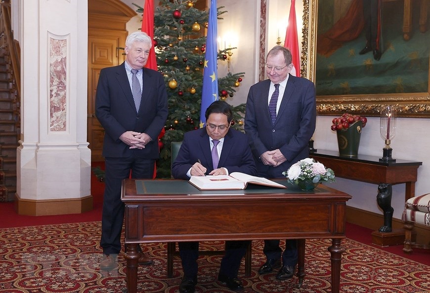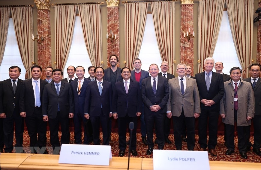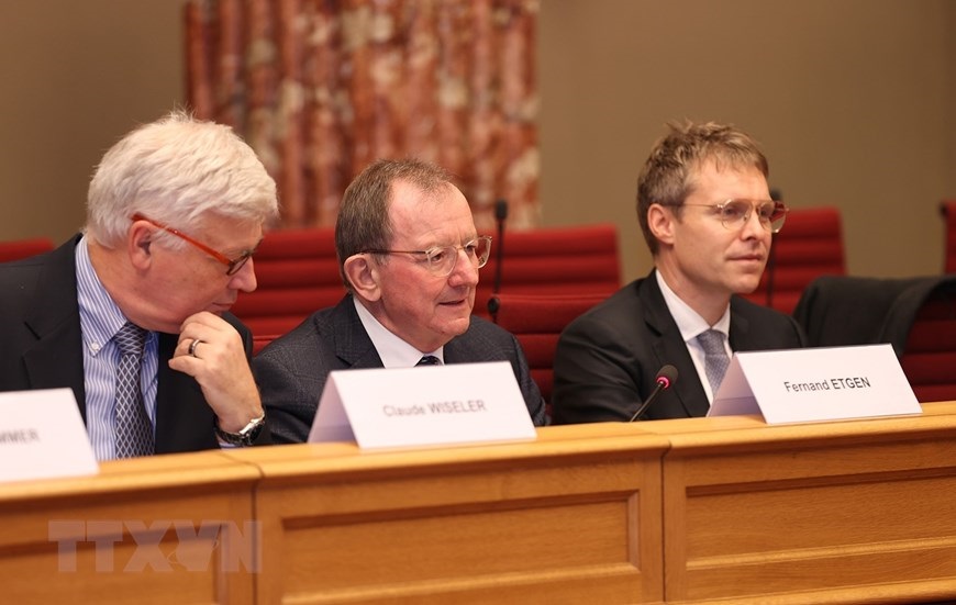 Hà Nội (TTXVN 9/12/2022) Chiều 9/12/2022 (giờ địa phương), tại Luxembourg, Thủ tướng Chính phủ Phạm Minh Chính hội kiến Chủ tịch Nghị viện Luxembourg Fernand Etgen. Chiều 9/12 (giờ địa phương), tại Luxembourg, Thủ tướng Chính phủ Phạm Minh Chính hội kiến Chủ tịch Nghị viện Luxembourg Fernand Etgen. (Ảnh: Dương Giang/TTXVN)Chủ tịch Nghị viện Luxembourg Fernand Etgen phát biểu. (Ảnh: Dương Giang/TTXVN)Thủ tướng Phạm Minh Chính phát biểu tại buổi hội kiến. (Ảnh: Dương Giang/TTXVN)Thủ tướng Phạm Minh Chính hội kiến Chủ tịch Nghị viện Luxembourg Fernand Etgen. (Ảnh: Dương Giang/TTXVN)Thủ tướng Phạm Minh Chính và Chủ tịch Nghị viện Luxembourg Fernand Etgen cùng thành viên đoàn hai nước. (Ảnh: Dương Giang/TTXVN)Thủ tướng Phạm Minh Chính viết lưu bút tại Nghị viện Luxembourg. (Ảnh: Dương Giang/TTXVN)Chủ tịch Nghị viện Luxembourg, Fernand Etgen giới thiệu với Thủ tướng Phạm Minh Chính lịch sử, kiến trúc Toà nhà Nghị viện. (Ảnh: Dương Giang/TTXVN)