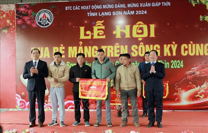 Hà Nội (TTXVN 3/3/2024) Ngày 3/3 (tức ngày 23 tháng Giêng), tại thành phố Lạng Sơn, diễn ra “Lễ hội đua bè mảng trên sông Kỳ Cùng năm 2024”; 24 đội với 96 vận động viên đến từ 11 huyện, thành phố tham gia tranh tài trên đường đua dài 800m. Các đội đua diễu hành trên sông Kỳ Cùng đoạn qua Thành phố Lạng Sơn. Ảnh: Anh Tuấn – TTXVNCác đội tham gia đua bè nỗ lực từ khi xuất phát. Ảnh: Anh Tuấn – TTXVNCác tay chèo dồn sức chèo nhanh và đều để đưa bè vượt lên phía trước. Ảnh: Anh Tuấn – TTXVNMỗi đội đua gồm 3 tay đua là những thanh niên trai tráng từ 18 tuổi trở lên, khỏe mạnh, có tài sông nước, có kinh nghiệm bơi bè. Ảnh: Anh Tuấn – TTXVNTay chèo bè làm từ gỗ xoan già có độ dài 1,5 – 1,7 m gồm 2 bộ phận: tay cầm – tay nắm dài 1 – 1,2 m, đường kính 7 – 8cm và mái chèo rộng 10 – 12cm, dài 50 – 60cm, dày 1 – 2cm (dày ở giữa, 2 bên vát mỏng dần). Ảnh: Anh Tuấn – TTXVN Rất đông nhân dân Lạng Sơn đến xem và cổ vũ cho Lễ hội đua bè mảng trên sông Kỳ Cùng. Ảnh: Anh Tuấn – TTXVN Thông thường mỗi cuộc đua gồm 3 vòng, đến cuối vòng thứ 3, các tay chèo lật bè ba lần (theo truyền thuyết, việc lật bè là để liên tưởng về cách vặn mình của Thần Rắn năm xưa lúc đi diệt Thuồng Luồng và cũng là mời Thần Rắn lên cùng vui với dân làng). Ảnh: Anh Tuấn – TTXVNCác đội đua thực hiện động tác quay bè. Ảnh: Anh Tuấn – TTXVN Các tay chèo dồn sức chèo nhanh và đều để đưa bè vượt lên phía trước. Ảnh: Anh Tuấn – TTXVNĐội xã Quốc Việt 1, huyện Tràng Định nhận giải Nhất tại “Lễ hội đua bè mảng trên sông Kỳ Cùng năm 2024”. Ảnh: Anh Tuấn – TTXVN