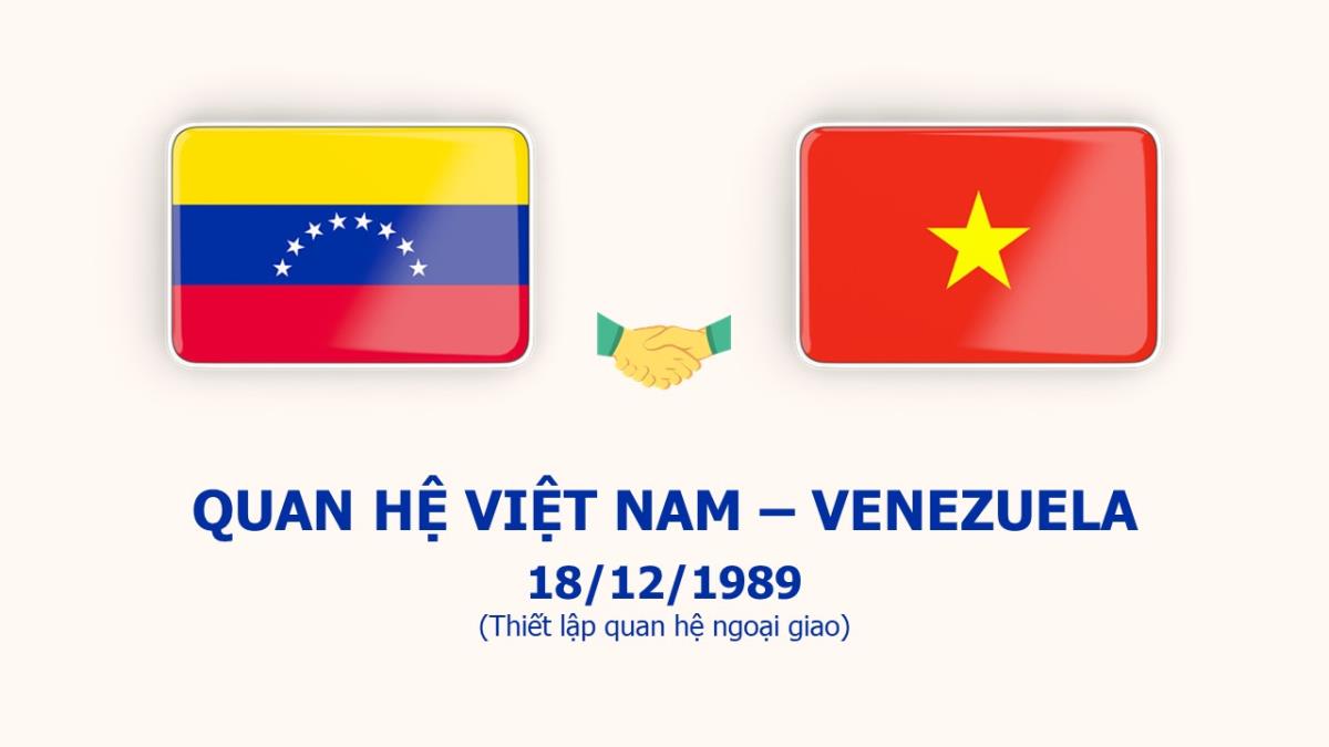 Việt Nam - Venezuela chính thức thiết lập quan hệ ngoại giao ngày 18/12/1989 và thiết lập khuôn khổ đối tác toàn diện từ tháng 05/2007. Thời gian qua, quan hệ hữu nghị truyền thống và đối tác toàn diện giữa hai nước tiếp tục được thúc đẩy, tăng cường trên cả ba trụ cột, đối ngoại Đảng, ngoại giao nhà nước và đối ngoại nhân dân.