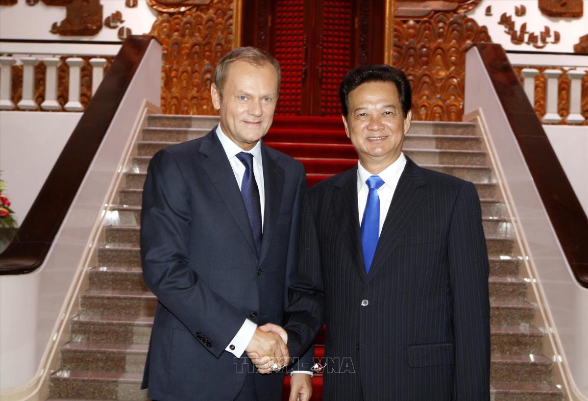 Ngày 9/9/2010, tại Văn phòng Chính phủ, Thủ tướng Nguyễn Tấn Dũng và Thủ tướng Ba Lan Donald Tusk hội đàm. Ảnh: Đức Tám - TTXVN