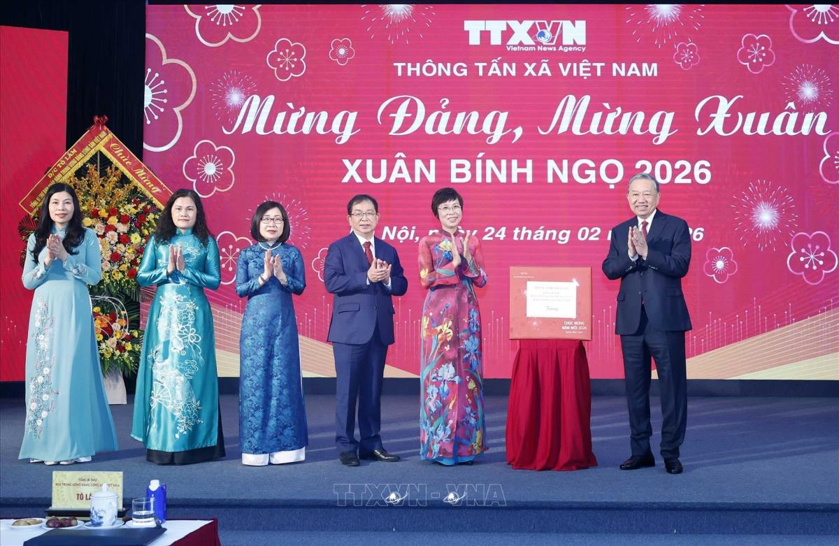 Trong không khí phấn khởi mừng Đảng, mừng Xuân Bính Ngọ, với niềm tin và khí thế mới, sáng 24/2/2026, tại Trụ sở Thông tấn xã Việt Nam, số 5 Lý Thường Kiệt, Hà Nội, Tổng Bí thư Tô Lâm đã đến thăm, chúc Tết các viên chức, người lao động Thông tấn xã Việt Nam (TTXVN) nhân dịp Xuân mới Bính Ngọ 2026.