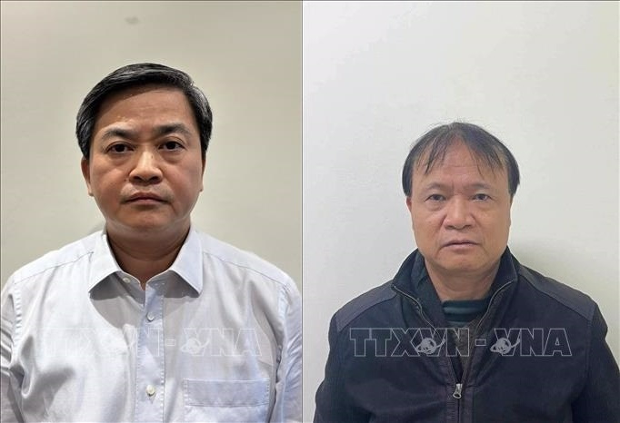 Lê Đức Thọ (cựu Bí thư Tỉnh ủy Bến Tre - bên trái) và Đỗ Thắng Hải (cựu Thứ trưởng Công Thương). Ảnh: TTXVN phát