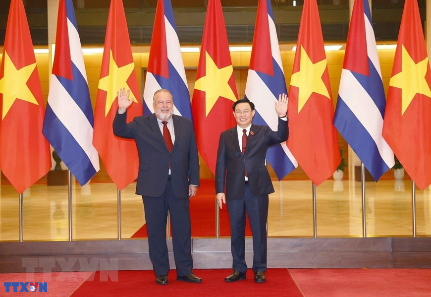 Chủ tịch Quốc hội Vương Đình Huệ tiếp Thủ tướng nước Cộng hòa Cuba Manuel Marrero Cruz thăm chính thức Việt Nam (29/9/2022). (Ảnh: TTXVN)