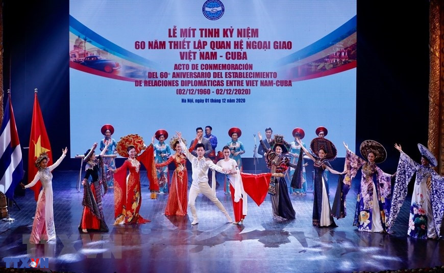 Mít tinh kỷ niệm 60 năm Ngày thiết lập quan hệ ngoại giao Việt Nam - Cuba (02/12/1960-02/12/2020) tại Hà Nội. (Ảnh: Dương Giang/TTXVN)