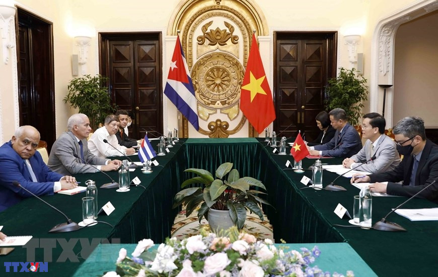 Thứ trưởng Bộ Ngoại giao Việt Nam Hà Kim Ngọc và Thứ trưởng Thứ nhất Bộ Ngoại giao Cuba Gerardo Penalver Portal đồng chủ trì Phiên tham khảo Chính trị cấp Thứ trưởng Ngoại giao Việt Nam-Cuba lần thứ VII. (Ảnh: An Đăng /TTXVN)