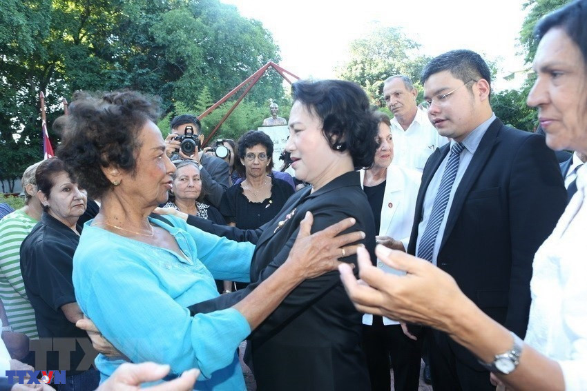 Chủ tịch Quốc hội Nguyễn Thị Kim Ngân gặp gỡ các chuyên gia Cuba từng giúp đỡ Việt Nam trong thời kỳ chiến tranh tại Thủ đô La Habana, Cuba (29/11/2016). (Ảnh: Trọng Đức/TTXVN)
