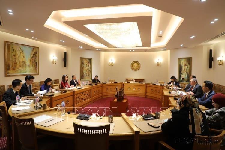 Phó Chủ tịch Quốc hội Nguyễn Đức Hải làm việc với Phó Chủ tịch Thượng viện Ai Cập Bahaa El-Din Abu Shaqqa trong chuyến thăm và làm việc tại Ai Cập (28/11/2022). Ảnh: Nguyễn Trường-TTXVN