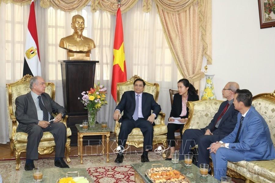 Trưởng Ban Tổ chức Trung ương Phạm Minh Chính thăm cộng đồng người Việt Nam tại Ai Cập (2019). Ảnh: Anh Tuấn - TTXVN