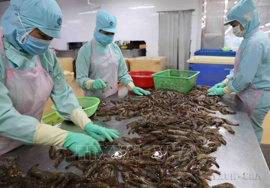 Các mặt hàng xuất khẩu chính của Việt Nam sang Ai Cập bao gồm máy vi tính, sản phẩm điện tử, linh kiện, hàng thủy sản, hạt tiêu, sợi, cà phê, và các sản phẩm nông nghiệp khác...Trong ảnh: Chế biến tôm đông lạnh xuất khẩu tại nhà máy của Công ty Thuỷ sản Minh Phú Hậu Giang (Hậu Giang). Ảnh: Vũ Sinh - TTXVN