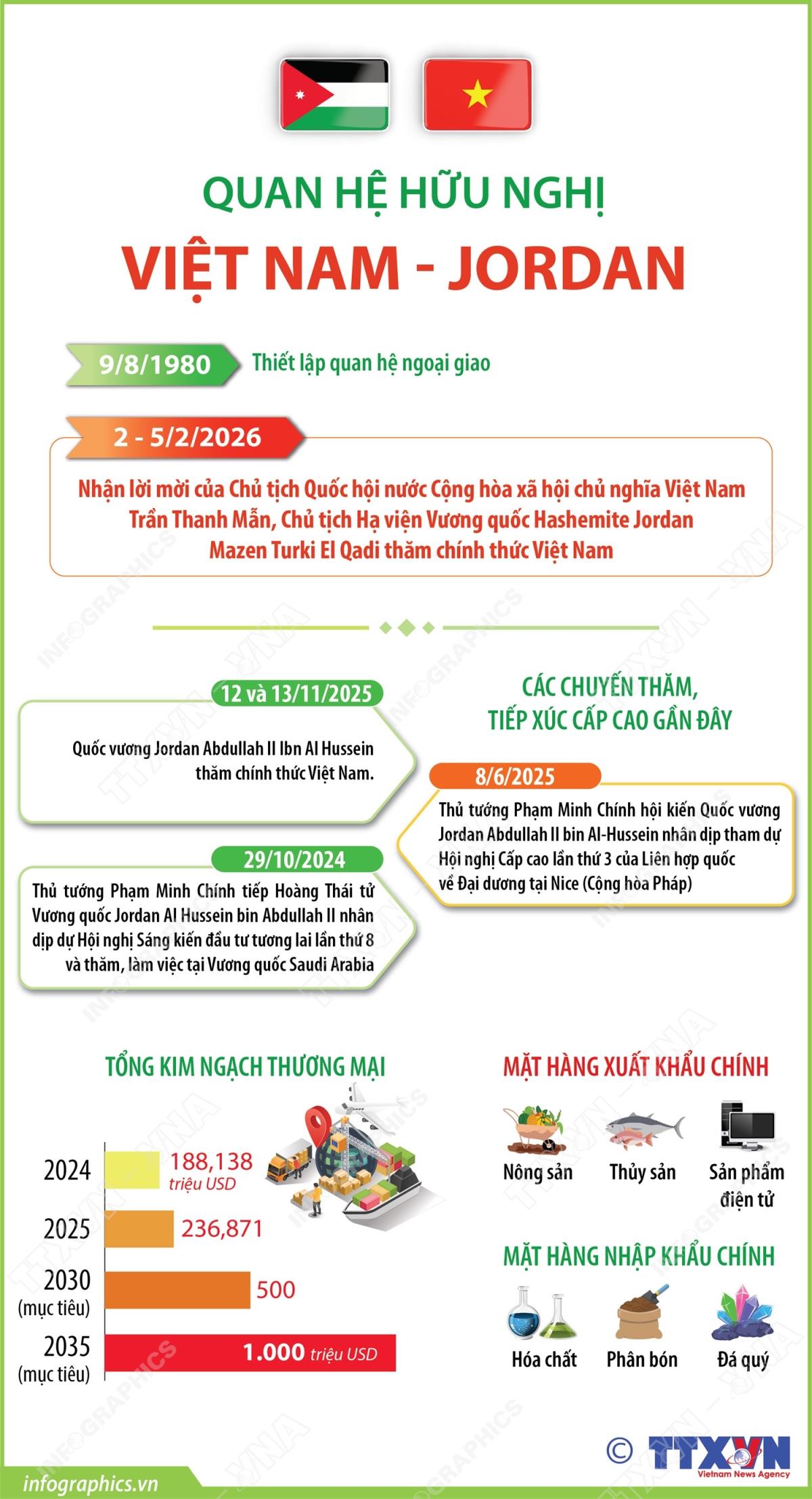 [Infographics] Quan hệ hữu nghị Việt Nam - Jordan