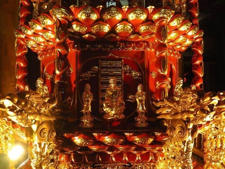 Tòa Cửu phẩm liên hoa chùa Côn Sơn, là một trong những tinh hoa của kiến trúc nghệ thuật Phật giáo, do Đệ Tam Thánh Tổ Huyền Quang lập ra từ thế kỷ XIII (2017). Ảnh: Mạnh Minh- TTXVN