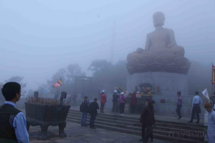 Hàng vạn du khách đến dâng hương ở chùa Đồng, thuộc Quần thể di tích danh thắng Yên Tử, tỉnh Quảng Ninh (25/2/2018). Ảnh: TTXVN