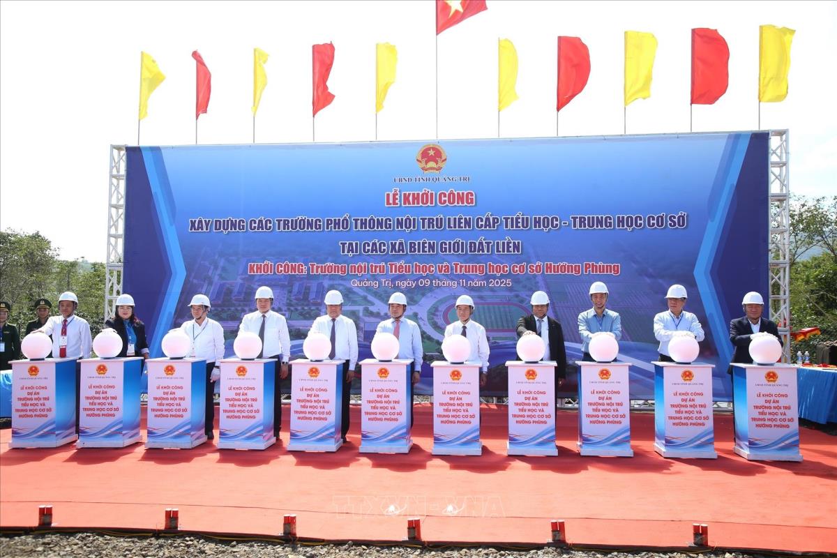Quảng Trị (9/11/2025) Thực hiện chủ trương của Đảng, Nhà nước về đầu tư xây dựng trường học cho các xã vùng biên giới, sáng 9/11/2025, tại xã Hướng Phùng, UBND tỉnh Quảng Trị đã tổ chức lễ khởi công xây dựng Trường nội trú Tiểu học và Trung học cơ sở Hướng Phùng. Dự án có tổng vốn đầu tư 360 tỉ đồng, được xây dựng trên diện tích 10 ha với quy mô 40 lớp học, trong đó, 22 lớp tiểu học và 18 lớp Trung học cơ sở đáp ứng nhu cầu học tập cho khoảng 1.500 học sinh trong giai đoạn 1. Định hướng giai đoạn 2 mở rộng lên 2.100 học sinh với 55 lớp học. Công trình gồm các hạng mục: Khối lớp học, khu nội trú học sinh, nhà công vụ giáo viên, khu nhà ăn - bếp, nhà đa năng, sân thể thao, cảnh quan và hạ tầng kỹ thuật đồng bộ được đầu tư xây dựng mới hoàn toàn. Công trình dự kiến hoàn thành trước ngày 30/8/2026, kịp phục vụ năm học mới 2026 - 2027. Việc đầu tư xây dựng ngôi trường sẽ góp phần nâng cao chất lượng giáo dục, cải thiện điều kiện học tập, sinh hoạt của con em đồng bào dân tộc thiểu số vùng biên giới, góp phần nâng cao chất lượng nguồn nhân lực, tạo động lực phát triển cho khu vực miền núi phía Tây tỉnh Quảng Trị.