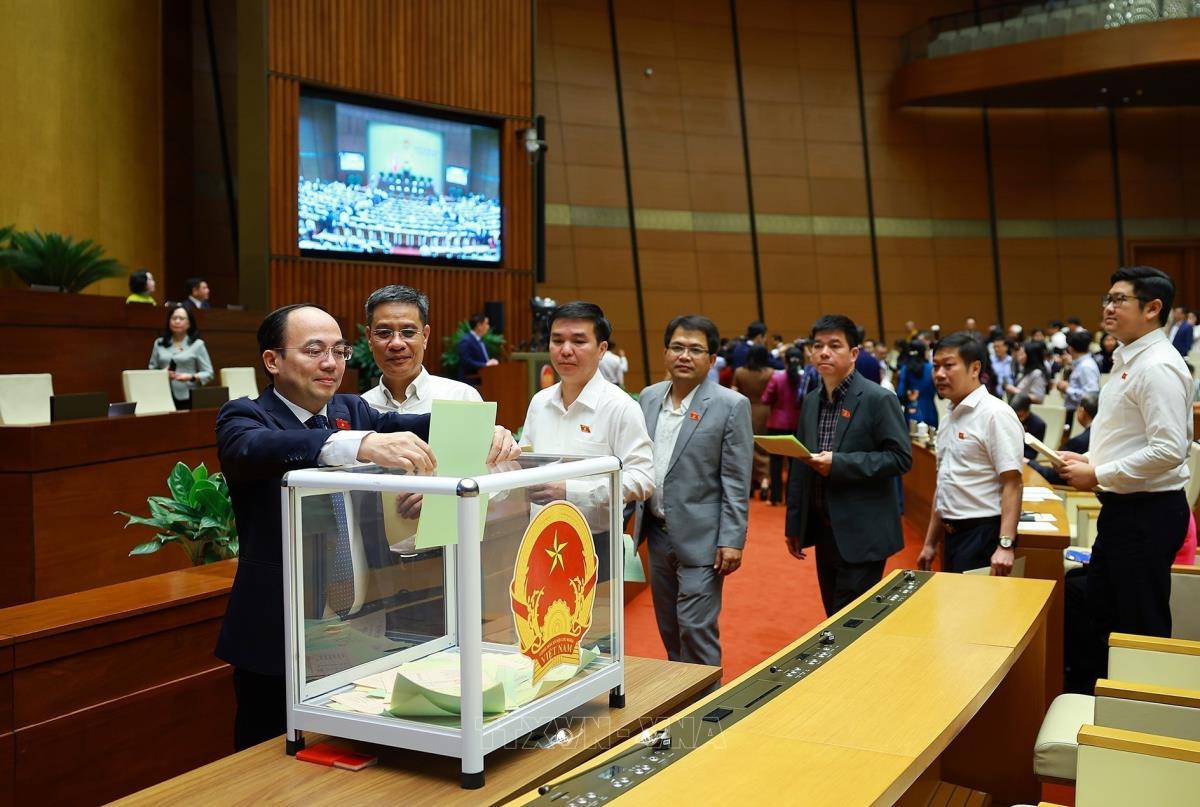 Đại biểu Quốc hội bỏ phiếu phê chuẩn Thẩm phán Tòa án nhân dân Tối cao, Phó Thủ tướng Chính phủ, Bộ trưởng và thành viên khác của Chính phủ (8/4/2026). Ảnh: Dương Giang - TTXVN