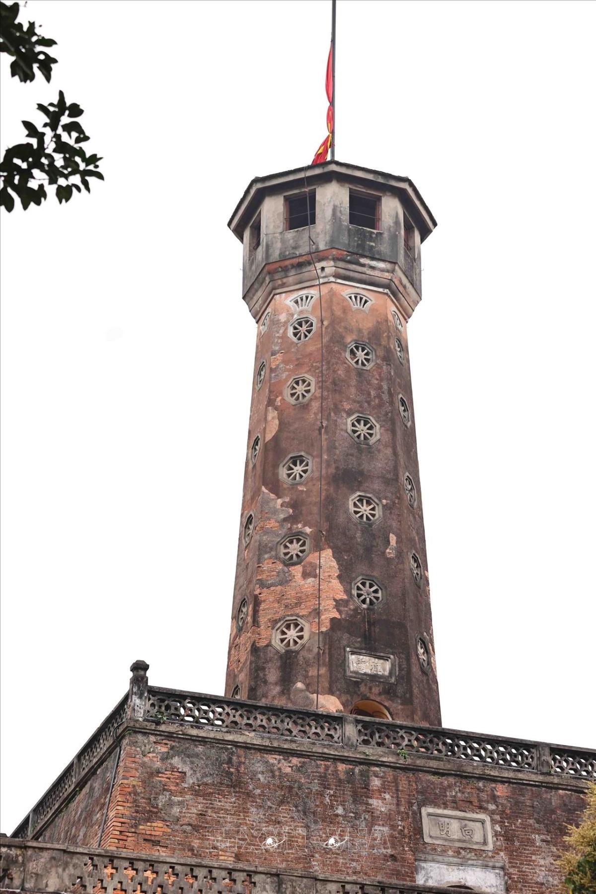 Treo cờ rủ tại cột cờ Hà Nội (4/4/2025). Ảnh: Minh Đức – TTXVN