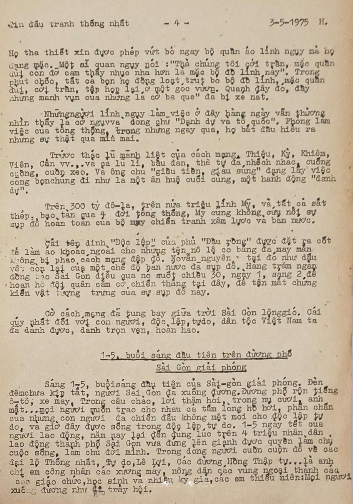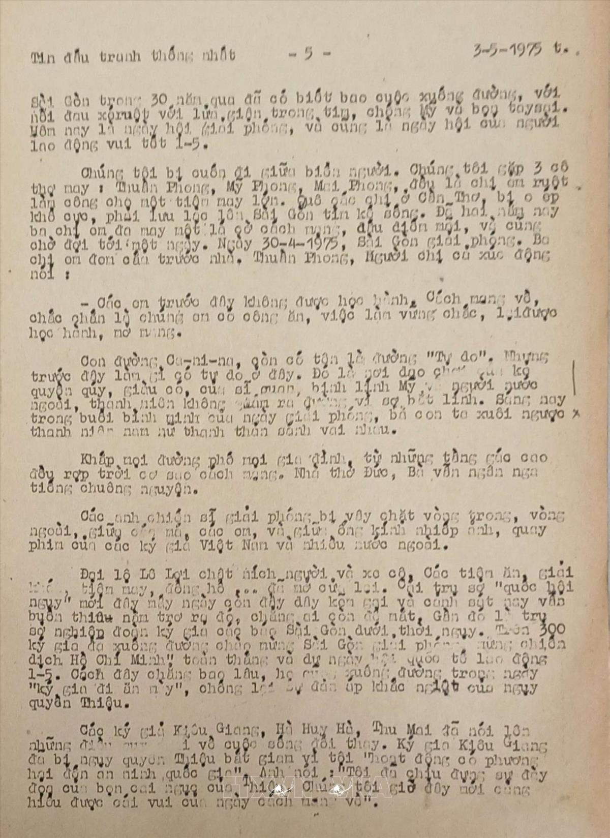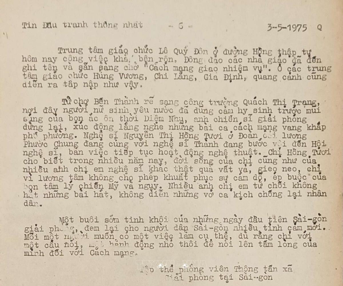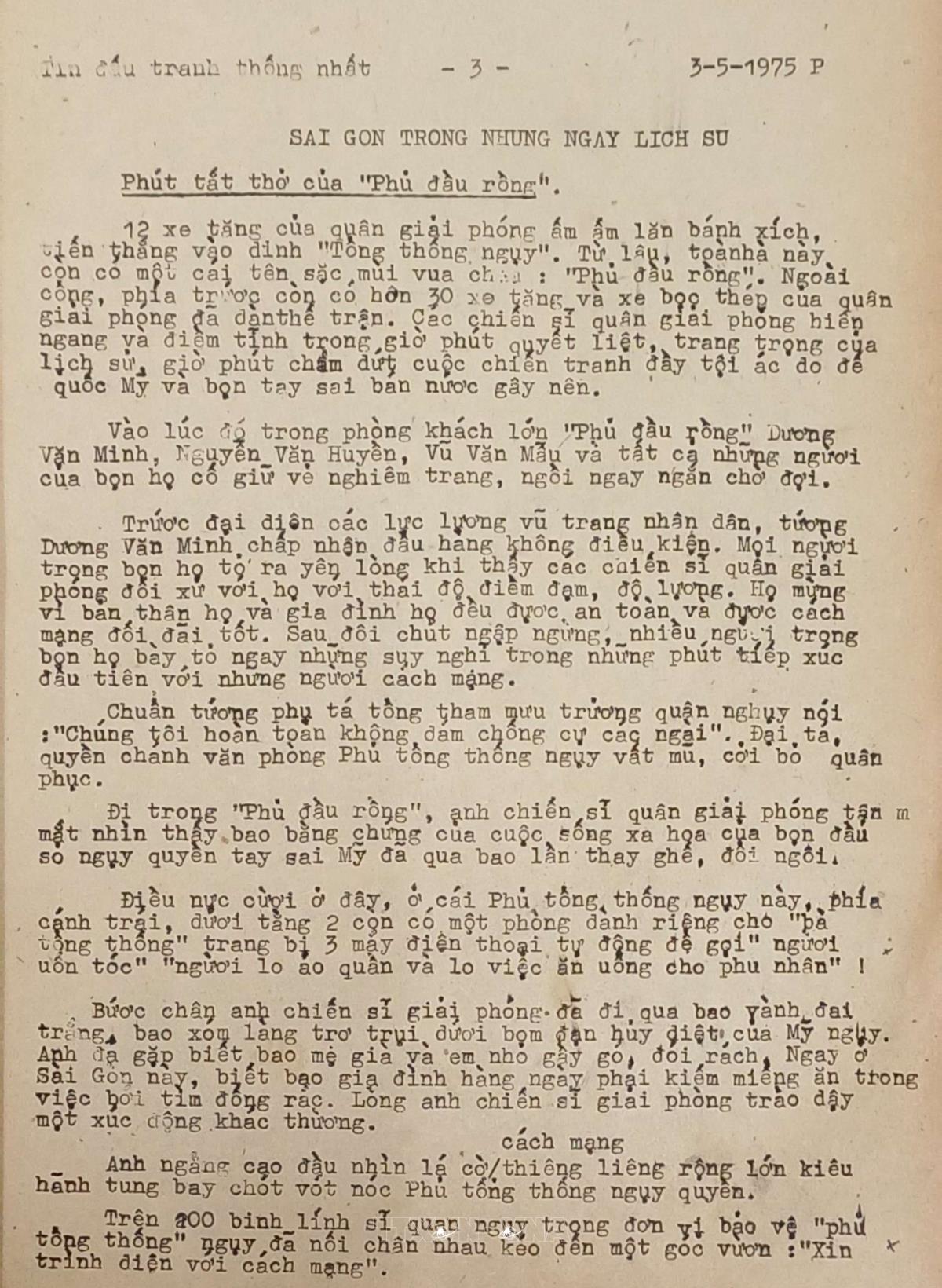 Sài Gòn trong những ngày lịch sử Tin đấu tranh thống nhất của Việt Nam Thông tấn xã, ngày 3/5/1975 Từ khóa:Giải phóng miền Namthống nhất đất nướcThông tấn xã Giải phónggiải phóng Sài GònChiến dịch Hồ Chí Minh