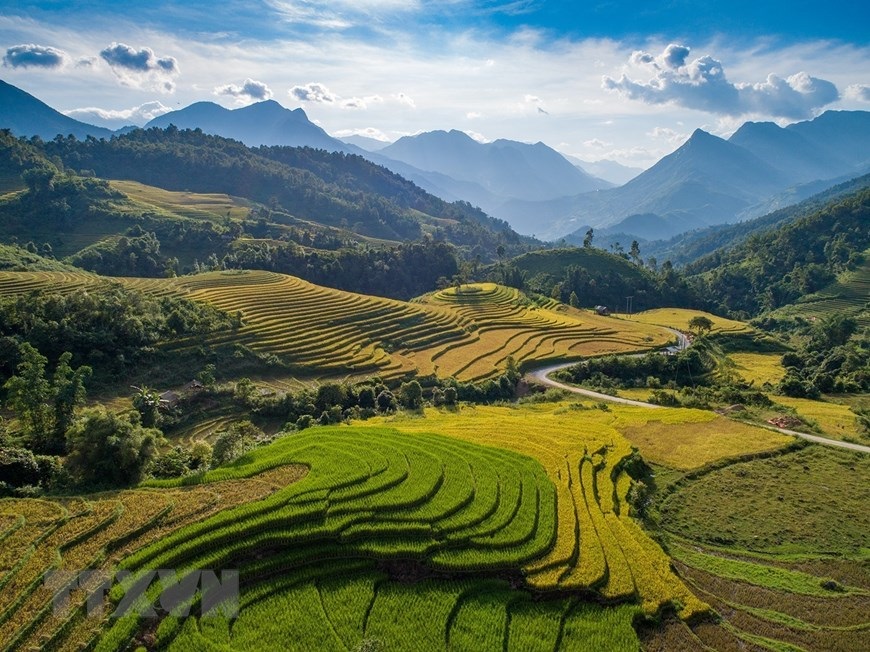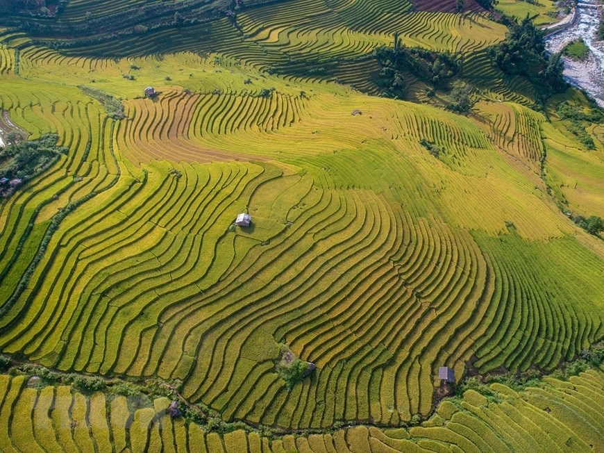 Sa Pa đẹp như một bức tranh khi những thửa ruộng bậc thang của người đồng bào dần chuyển từ xanh sang vàng. (Ảnh: Quốc Khánh/TTXVN)